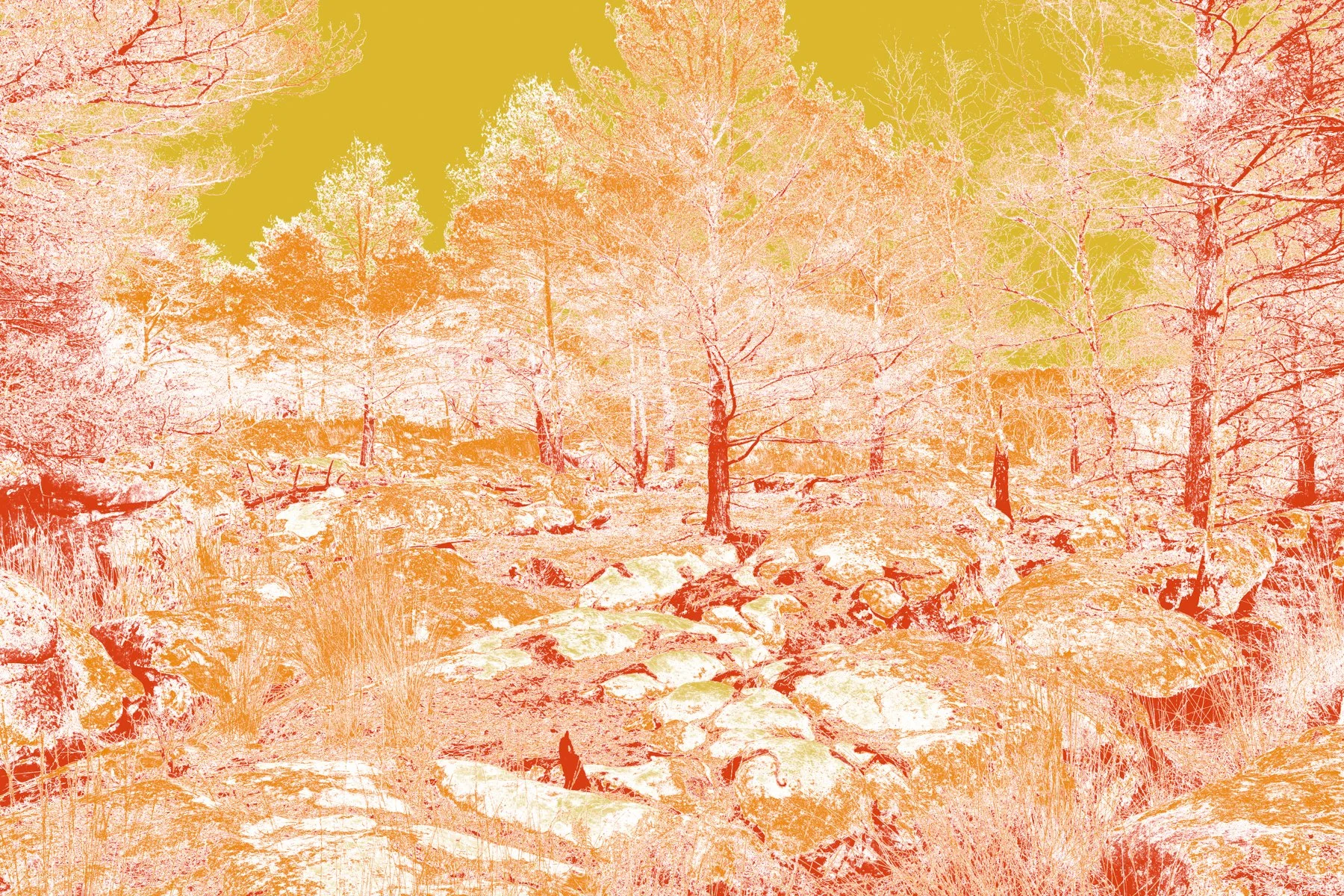 brule et je l’ai appliquée sur mes images d’arbre brulé. L’empreinte ainsi créée révèle dans le rouge le feu et
